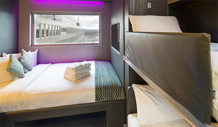 The Bloc Hotel Gatwick opened is situated within the South Terminal at Gatwick Airport, the terminal which also houses the train station with frequent trains to London.